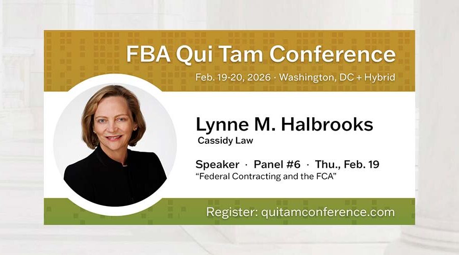 Our own Lynne Halbrooks will be speaking on a panel that will discuss the False Claims Act and federal government contracting.